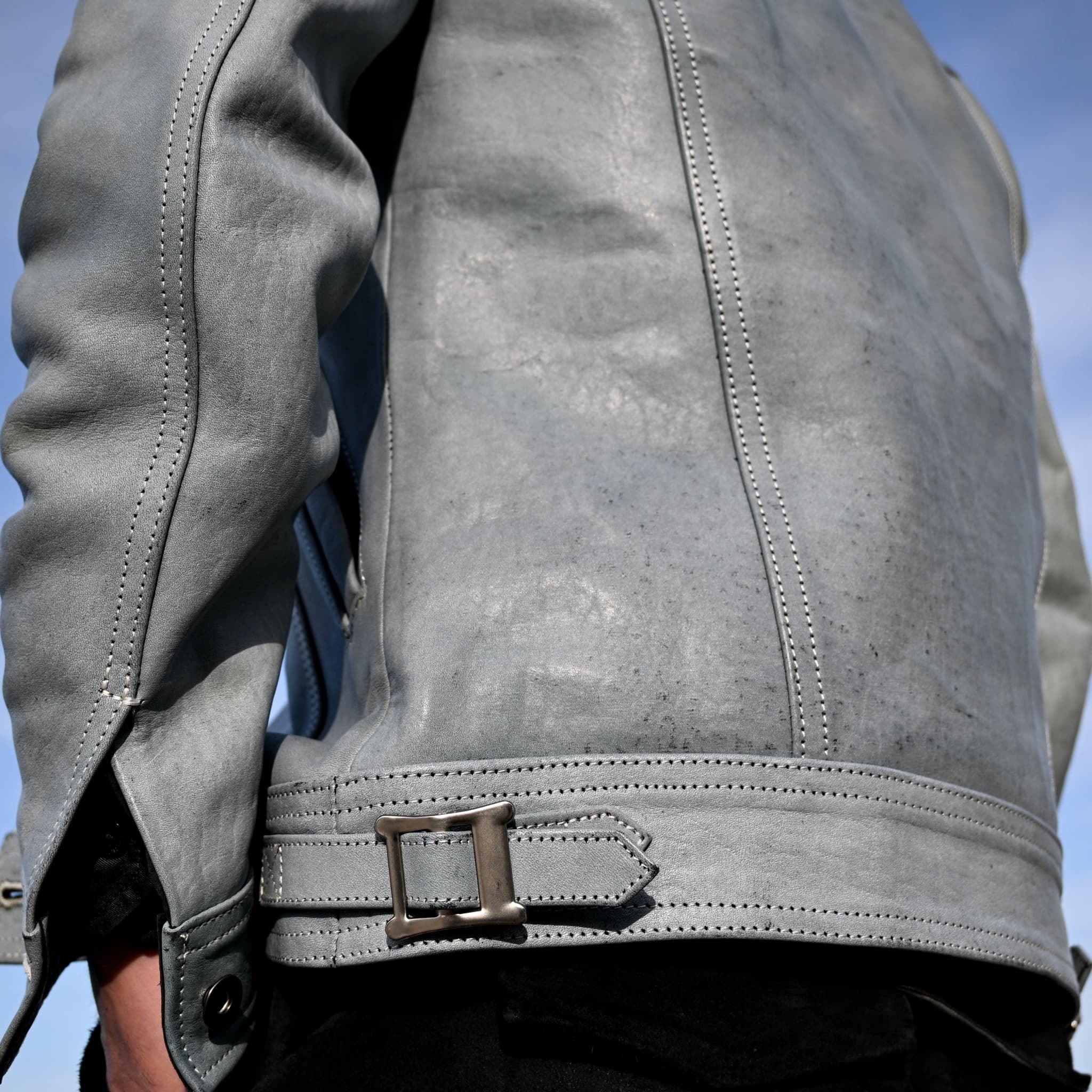 ライダース要素を盛り込んだ腰部分のバックル。